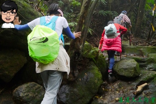 一開始爬上去還是人工做好的步道,逐漸深山移動後,一路上開始泥濘,此時就會羨慕有穿雨鞋的山友!