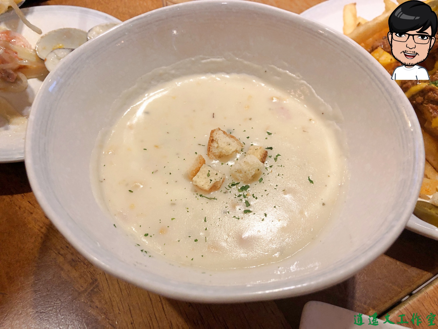 吃到後面,服務生為大家送上超濃郁玉米濃湯,典哥說想要把它放到變奶酪,我說乾脆放冷凍變成冰淇淋好啦~這樣我就會想吃XD~