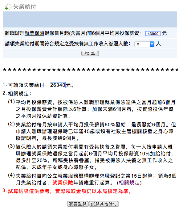 首先可以上網查詢自己失業給付,每個月能領到多少錢。以我的投保級距是43900元為例,失業給付每個月6成為26340元,若我6個月都無法找到工作,總共可以請領158040元。看起來很多吧!?可是要我閒閒沒事整整半年,我的人生鬥志會走下坡呢~所以我在申請完失業給付後,便開始搜尋人力銀行,找看起來我會喜歡的公司與工作。