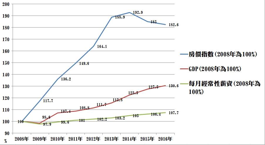 過去我們所見的廣告,都是以催促的語氣宣傳,並以美好的未來憧憬做擔保,可是事實真是如此?若非近十年來房價漲到「靠背」,讓一般人不得不「靠爸」才能買房,我可能還對買房有所美夢想像。然而當我看到這張圖,總算發現些什麼,特別是在馬英九執政時期(2008年~2016年),房價異常飆升,這到底是為什麼呢?