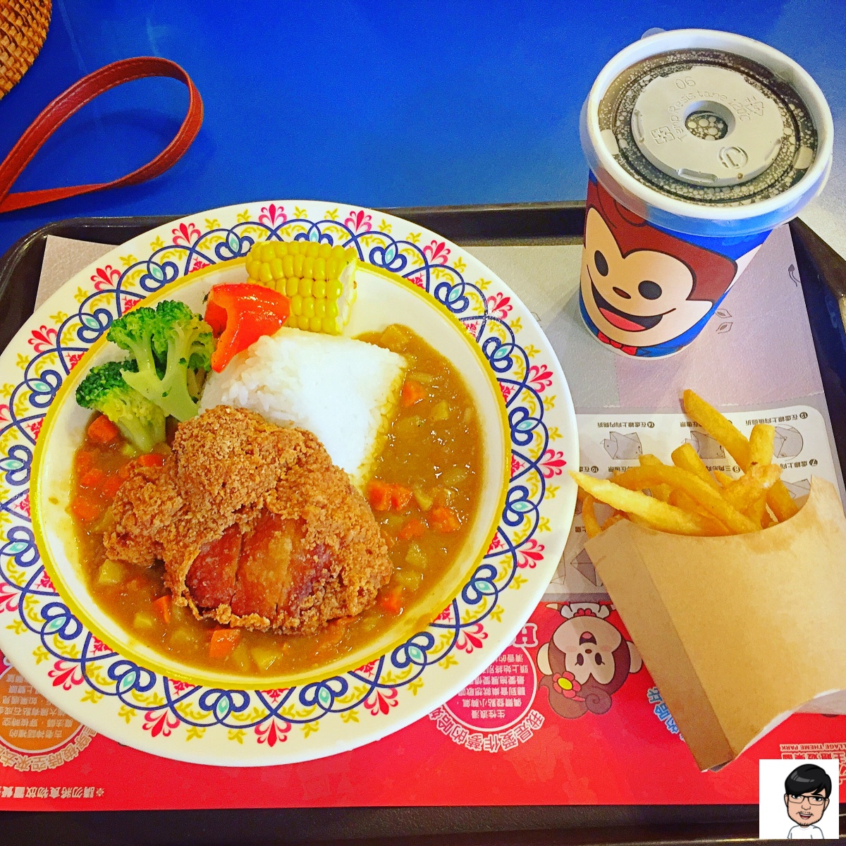 已經玩了好幾個遊樂設施,不知不覺肚子就餓了⋯⋯那就先來大快朵頤,這要價250元的咖哩雞套餐!