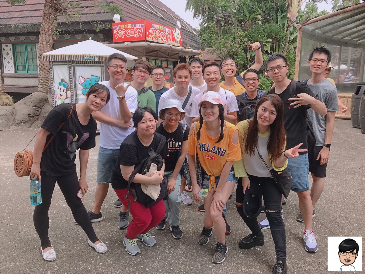 我們IT團隊高達30人,這次8/5員工旅行揪了17人成行一輛小巴士,在一般人都在上班的週一前往六福村黑皮!