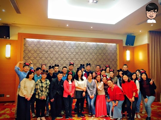 第一次走進世貿旁的小大樓,看到好多廳都在辦聚餐(尾牙),走進裡頭發現沒有什麼人,我一個人搭電梯上四樓,走繞半圈才到「雅廳」。話說經過「悅廳」有看到裡頭的人,頭上也是戴米奇米妮髮箍,我差點就要走進去XD~