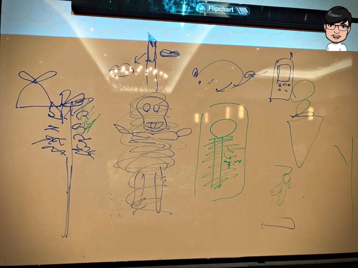 你畫我猜遊戲可以三人同時畫,剩餘其他人一起猜,其實都是簡單的題目。好笑的是有一題說三個字,結果答案是火車,這樣也能讓我們猜中XD~我們總共答對12題,比其他兩隊還多1題呢~