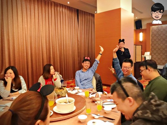 我們大家進入餐廳前,都要選擇米奇或米妮的髮箍。我決定「失控」一天選擇當米妮,就當一天女生角色吧!活動結束後還能帶回家紀念,Shine看到我說,要天天戴去公司XD~