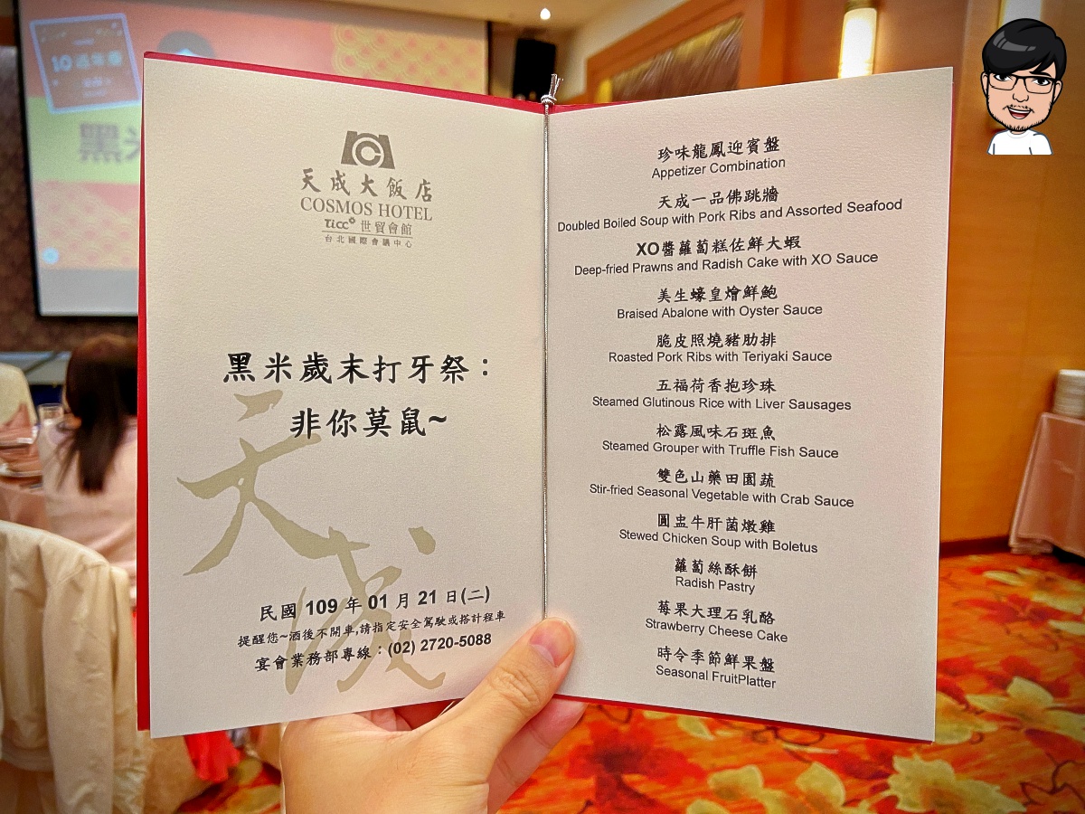 2020年尾牙1/21,是在過年連續假期的前兩天,是我加入第四家公司(希望這是最後一家XD)的第一年尾牙,助理幫我們選在信義區的天成飯店,而且是個包廂,不受其他饕客影響,我們可以在包廂裡盡情歡樂活動!