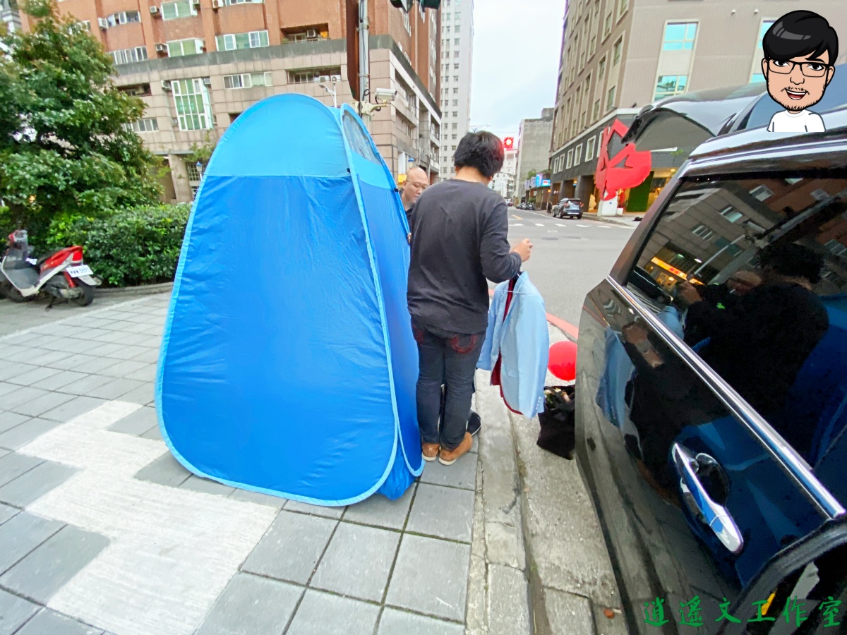 天色已昏暗,攝影助理拿出照明燈補光,原本以為拍起來會暗淡,可是當我們拿到成品,居然出乎意料之好讚!猜猜我們倆穿了什麼便服?