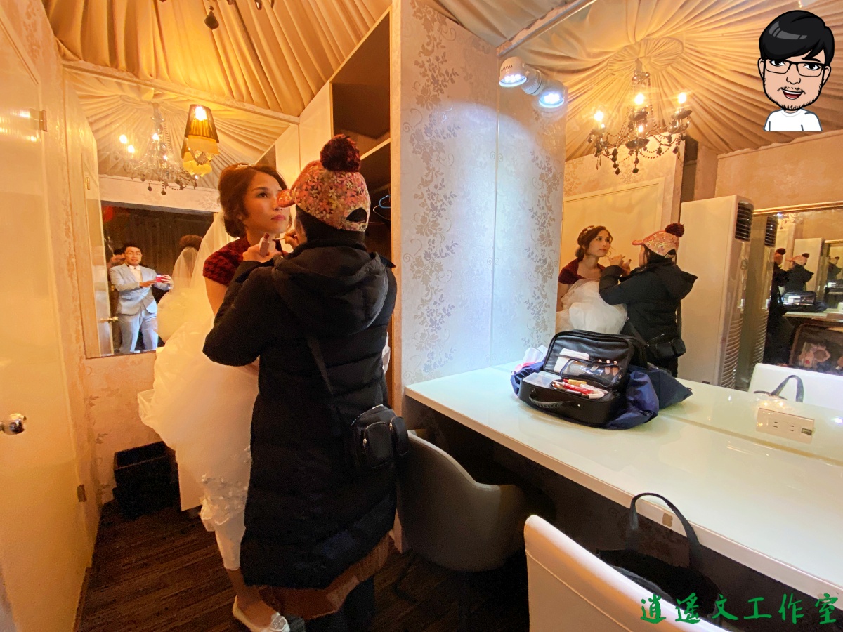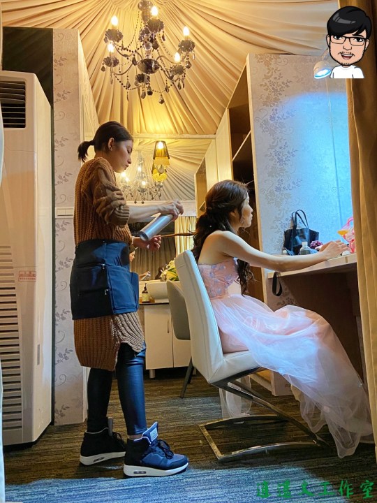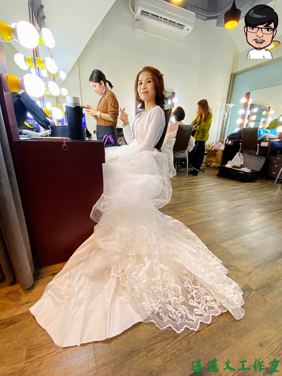 抵達時已經七點一刻,氣質美麗化妝師Boa已經在等我們到來,還有另外三對新人已經在梳妝。在此要先上第一套白色婚紗~