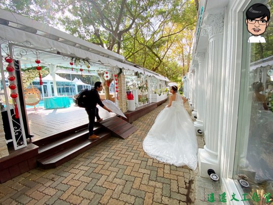 約莫十點我們抵達青青食尚花園會館,跟經理打聲招呼後,帶我們到新娘房準備,放好行李走出來,就開始拍歐式風格的景色。