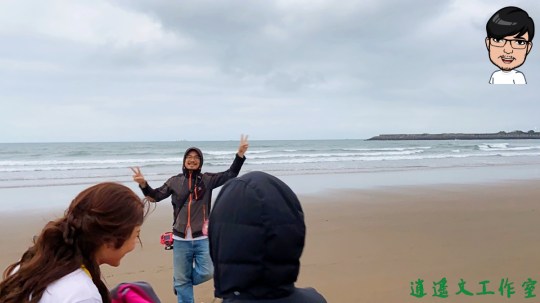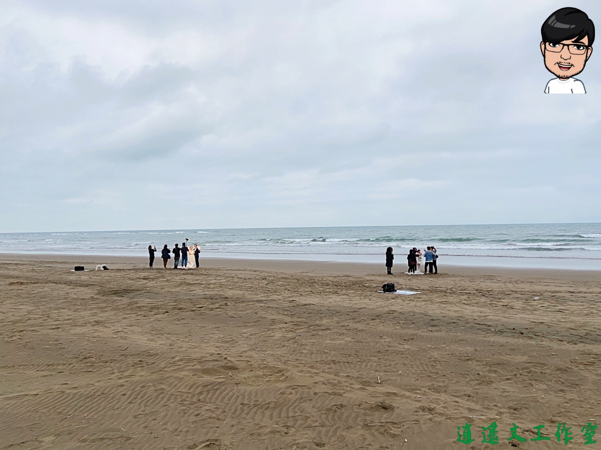 武哥帶領我倆前進沙崙海水浴場,遠遠就看到三對新人正在拍婚紗,想必這裡是拍攝海灘景的著名地點!