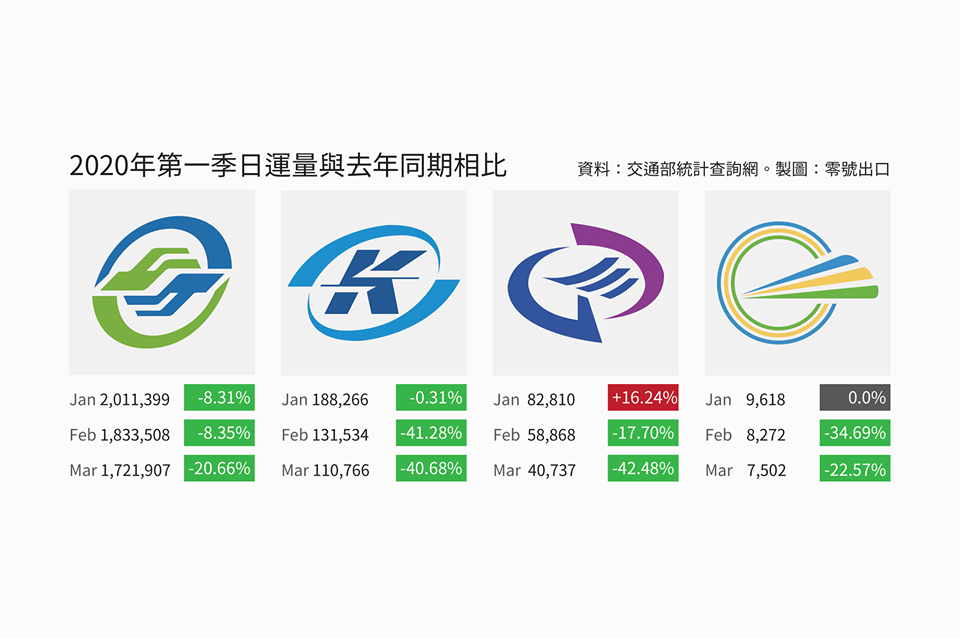 2020年運量都比2019年還要低,除了機捷1月運量特別高,可能是要逃回台灣的人?不過話說,我才知道我常搭的台北捷運,正常的每日運量有破200萬人次!