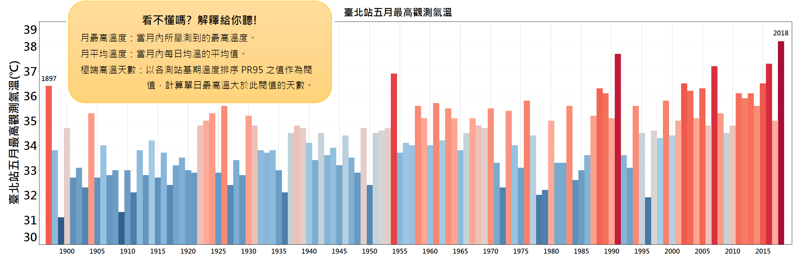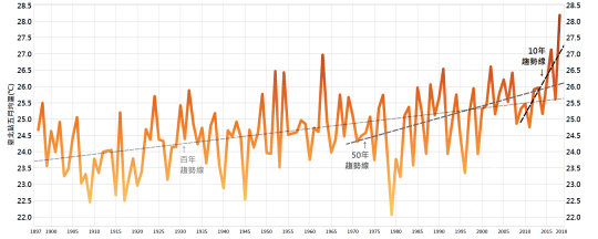 長期百年的數據顯示,尤其是這20年來,台北高溫日數確實有增加的趨勢!