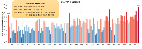 今年七月份提到台北最高溫度破紀錄39.7度,此刻看到氣象達人彭啟明的圖表,才驚覺原來台北這十年來高溫日數持續增加中⋯⋯