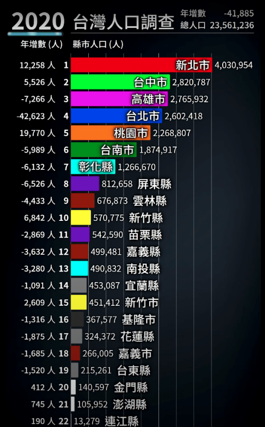看完台中市人口還不夠?那麼就來看2020年全台灣所有縣市的人口數據圖表!