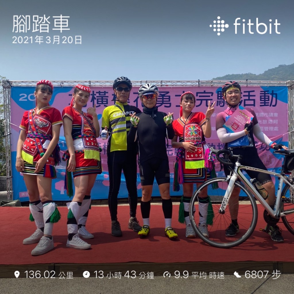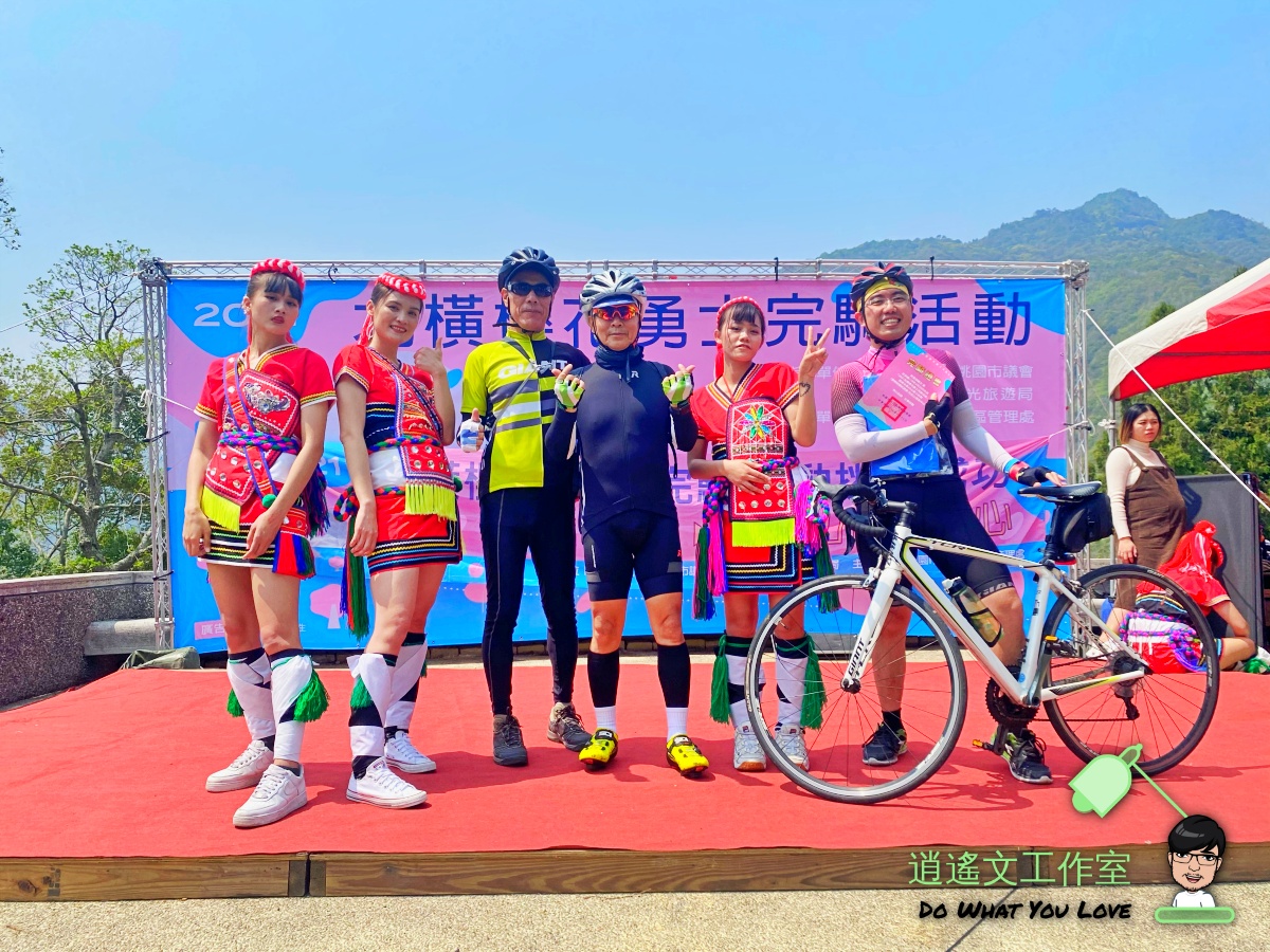 給了蓋三個章的挑戰證,領了一張完騎證書和一個多功能束口袋,鬆了一口氣,肚子稍微餓,看了幾首原住民女舞,此刻天氣非常晴朗。平常不會很熱鬧的此地,因為活動架設超大型喇叭,在遠處就能聽到呢!