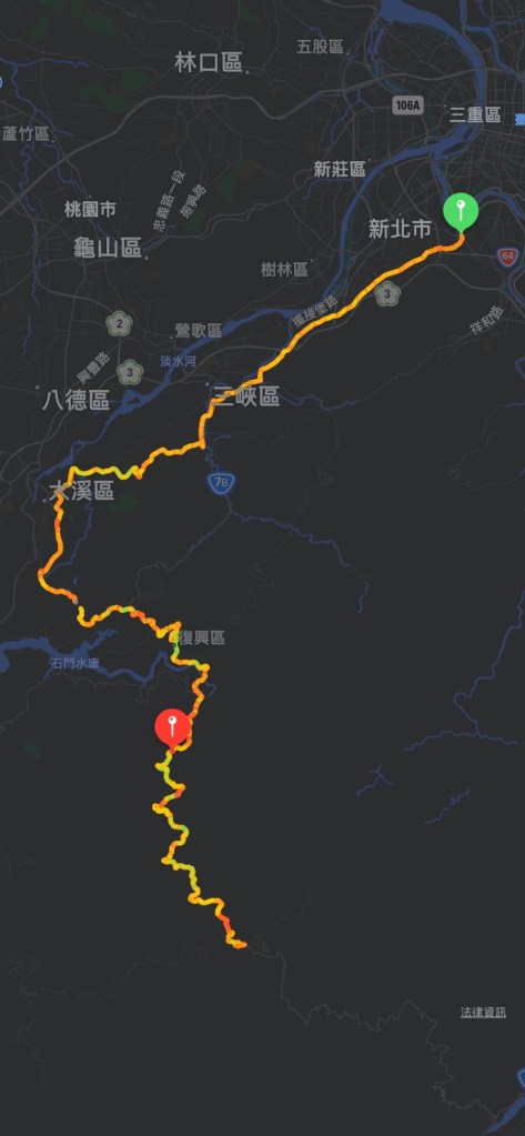 前一個禮拜,還在苦惱要如何去會場,若沒有 Peter 開車支援,我們就得自己想辦法過去。我稍微用 Google Map 設定起始與終點,發現路程約 35 公里,走台三線轉台七線,約要 2 小時 5 分鐘,為了保險起見,還是要估 2 小時半前出發,才能保證在 7:00 前抵達會場,畢竟第一次這麼騎乘,路不熟肯定會多花些時間一路確認。我們就約定 4:30 在連城路與中正路口會合。🤠