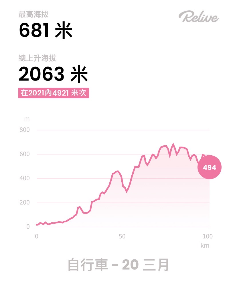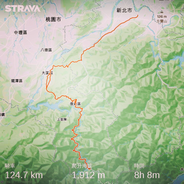 看了運動紀錄非常驚訝!我們騎乘總長度 124 公里,總爬升 1912 公尺,我的腰和脖子在拉拉山遊客中心就開始痠疼,到家後雙手肘、雙大小腿陸續浮現疼痛感。此刻只想洗洗睡啦~