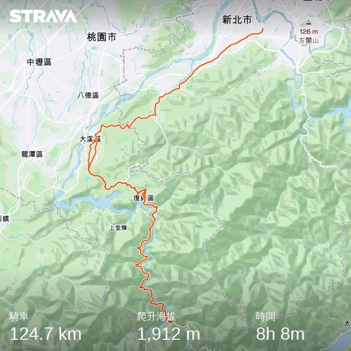 - 長度 124 公里:新北中和的遠東世紀廣場 -> 頭寮經國紀念館 -> 拉拉山遊客中心 -> 北橫之星 -> 後慈湖 -> 大溪站