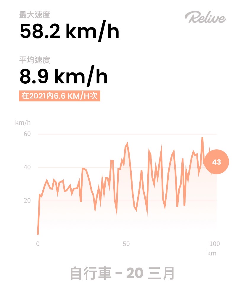 NG4:我記錄運動使用六個 App,包含手戴的 Apple Watch、Fitbit,和手機安裝的 Fitbit、小米運動、Strava、Relive,其中只有手機上的 Strava 有完整紀錄,其他App則在約100公里處就停止,直到等公車時要按結束,才發現 App 要重新開啟⋯⋯不過好在至少有一個完整記錄囉!