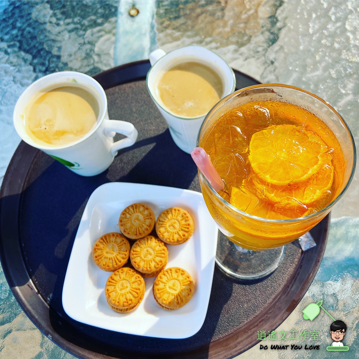 下滑約 20 公里,來到北橫之星民宿,蔡王大哥再次點咖啡,這次由我請大家喝,我想喝點別的,看到水蜜桃汁,讓我喜出望外,想了一下,發現拉拉山盛產水蜜桃呀~難得來到此地,就喝當地盛產的果汁,我們坐在戶外,看著夕陽西下,聽到鵝叫聲,很有意境!
