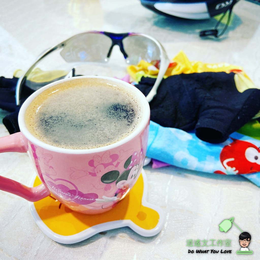 這餐是王大哥搶著請客,蔡大哥則想請喝咖啡,旁邊雜貨店沒有現泡咖啡,對面單車旅宿有美式咖啡,我們停好公路車,腳有點跛走進圓桌坐下。