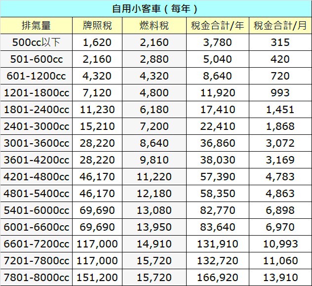 以後就直接看這篇文章就好啦~這篇名為圖解汽機車牌照稅與燃料稅費率。