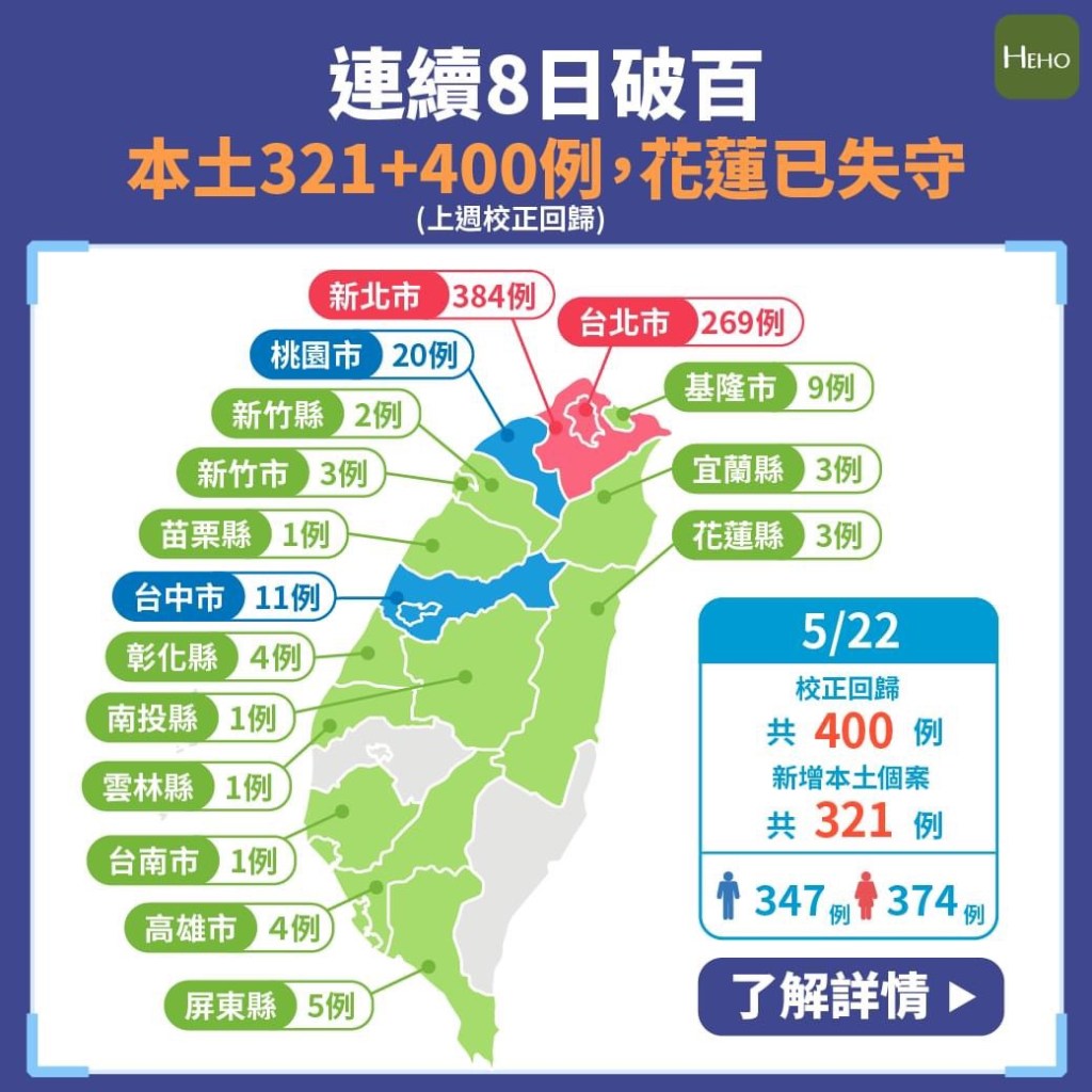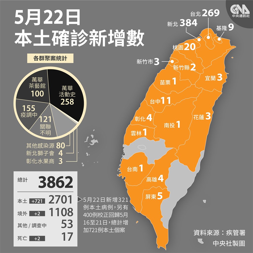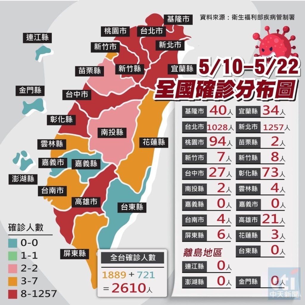 我們實際來看一下,5/22這一天新增721確診,是分佈在台灣哪些地方呢?
