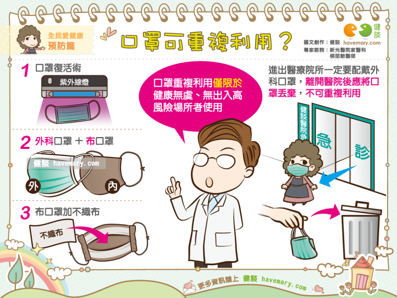 過去疫情尚未嚴重,我為了重複使用口罩,會戴可清洗的棉布口罩,但是這種口罩無法隔絕細菌,於是現在疫情比較嚴重,我都改戴外科口罩。