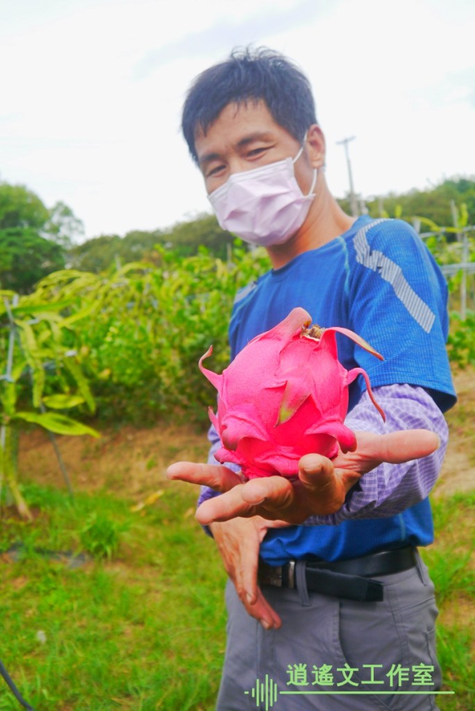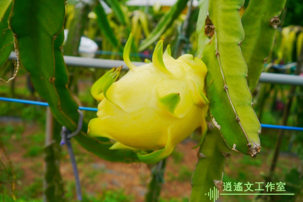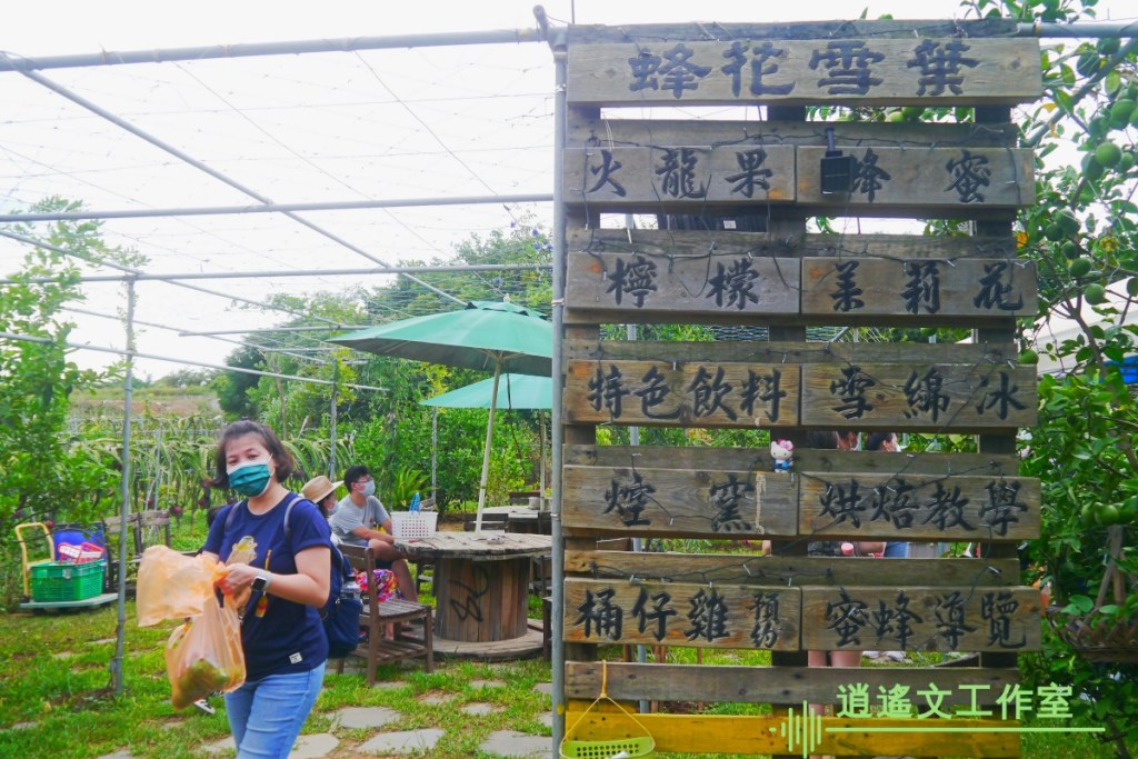 養蜂人帶我們到一旁火龍果園,跟我們說哪些可以摘下來。跟著他的腳步,我們看到好多豐滿的火龍果,有兩色和黃金兩種,我沒有打算割回來,看大家對黃金火龍果讚嘆連連,上次在大潤發我可是花了 90 元買了一顆品嚐,在這裡老闆定價一顆 100 元!若是沒吃過的我,這次肯定買一顆回去!