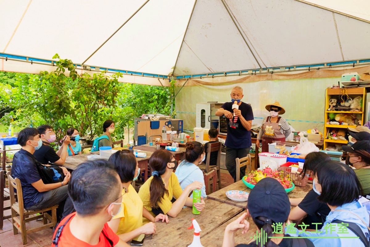 到了離別時間,其實我很想久留,坐在田中悠哉喝著現甩的蜂蜜汁,配剛採收的火龍果。最後就看著那對澳客(真的是澳洲來的客人),是一對夫妻帶著 6 歲小孩,他們可以更多機會跟農人們相處。