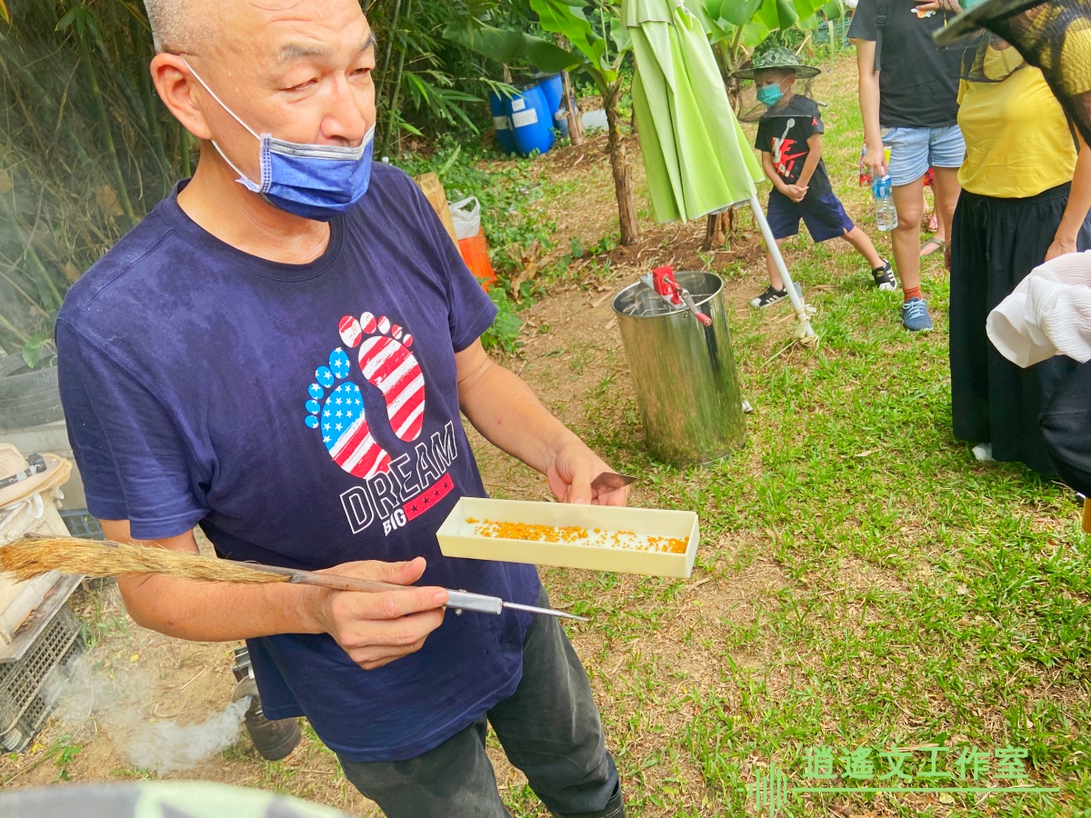 其他工作人員忙著把剛才取出的蜂蜜,熱騰騰地現做檸檬蜂蜜水,我們每人拿一杯,喝完可以再續杯,也就是喝到飽!不過剛吃飽沒多久,其實我沒有喝很多啦⋯⋯倒是有拿一大匙花粉,倒進我的蜂蜜水,這滋味我永遠都忘不了~哈!😋