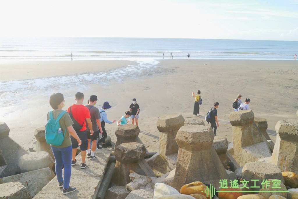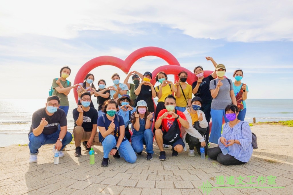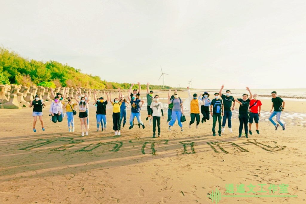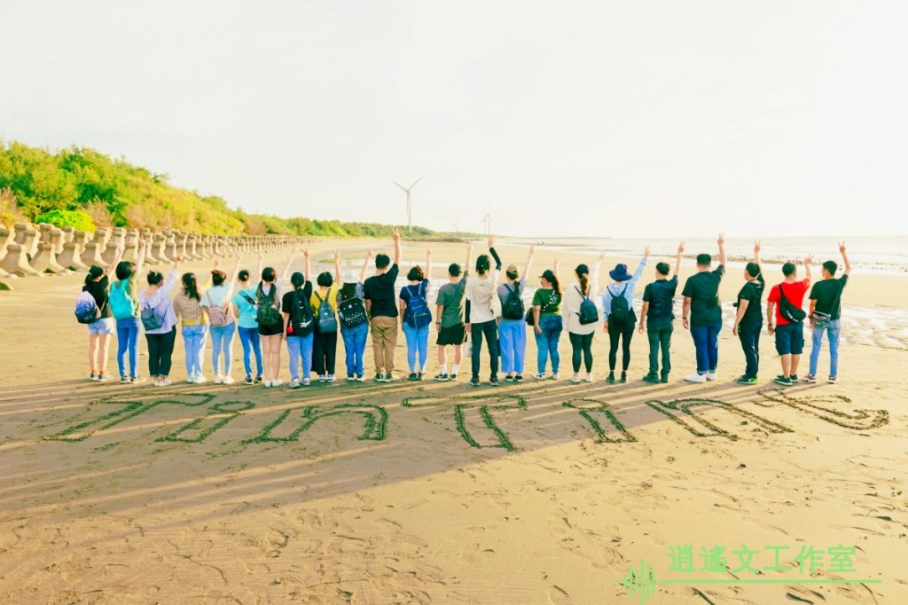 是時候拍大合照,我們偉大的團康隊長,帶領我們走下沙灘,他在沙灘上寫上公司名號,想要來個完美的公司史詩級合照。感謝我們御用的攝影師金,不僅會用單眼拍攝,還會拿 iPhone 用全景功能,拍出令人驚豔的照片。