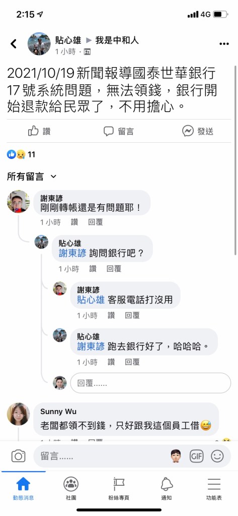順便聊一下,昨天 10/18,跟大學同學在台大公館吃便當,遇到國泰大當機,我同學去 ATM 兩次被吃 6000 元,後來得知是國泰出包⋯⋯我們倆的薪轉戶都是國泰,只是我今天不缺錢,所以沒去用 ATM,不然我的錢也會被吃掉⋯⋯🤑
