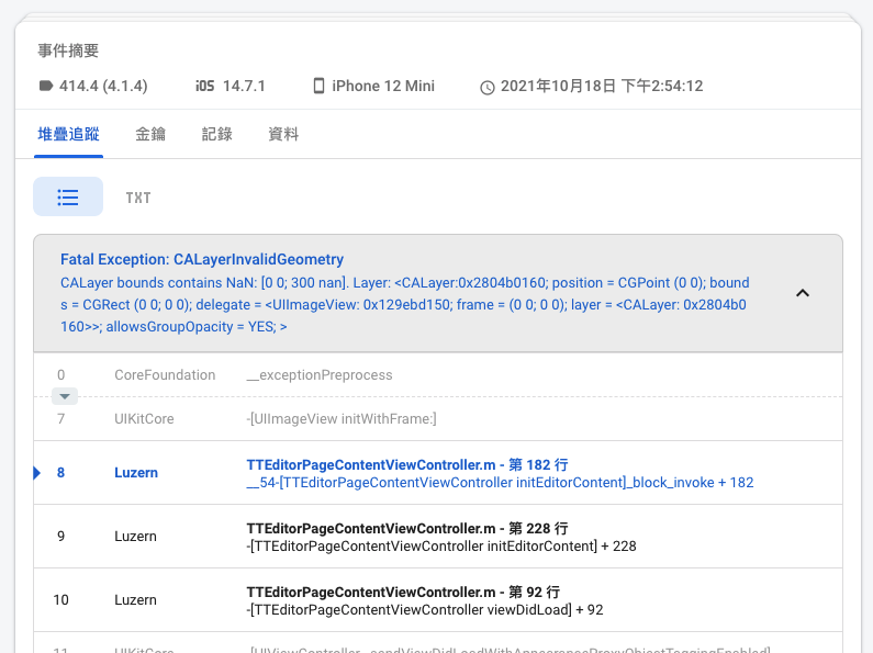 終於追到,是因為某個值「除以 0」導致後面運用此值的物件無法初始化而 Crash。