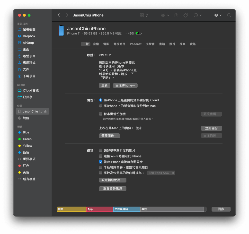 - iPhone 11 容量爆滿,剩下 154 MB