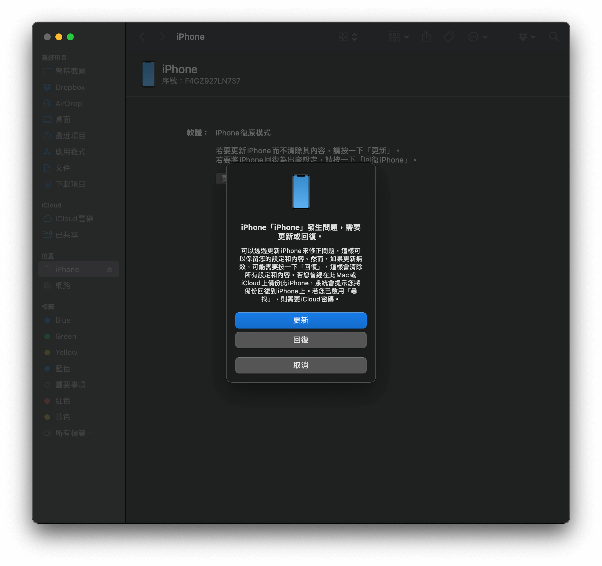 我是用 Mac,現在 iTunes 已經被蘋果放棄,打開 Finder 看右邊,會出現自己的手機,點進去後就可以跟 iTunes 有類似的功能可操作。記得要選擇「更新」,保留所有的照片、檔案喔~