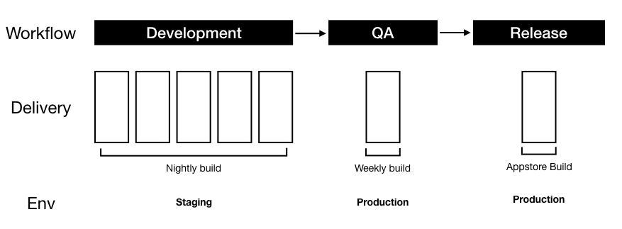 CD(持續部署,Continuous Delivery),是我們希望在開發的任何一個階段,都能夠自動化打包出版本給需要的人使用。那誰會是需要的人?在開發的過程中,工程團隊想要手動測試 App 時,就會需要一個版本來測試;而在開發完畢後,UI/UX 測試人員也會需要一個版本來做測試。最後,在 App 要上線時,理所當然也會需要一個版本來送到 App Connect 上以供審核。