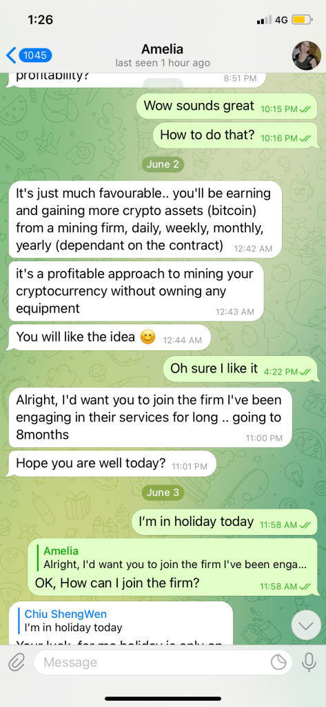 在我這篇文章,要來記錄我遇到的陌生人主動攀談,之所以會吸引陌生人主動接觸,大概是因為我參與幣圈類的社群。她(他)們會詢問我目前收益如何,透過什麼方式來投資加密貨幣,然後介紹她(他)們用的平台與方法,藉此引起我的好奇心,假若我追問怎麼跟進,接下來的故事就精彩了。🤡
