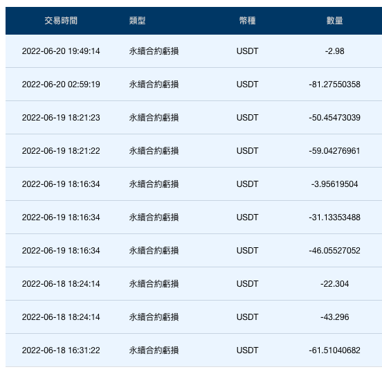 6/20 週一,我發現賽後那一段時間,市場高潮迭起,使得我大部分的倉位都被爆倉了⋯⋯未實現盈虧為 0,表示已爆倉。