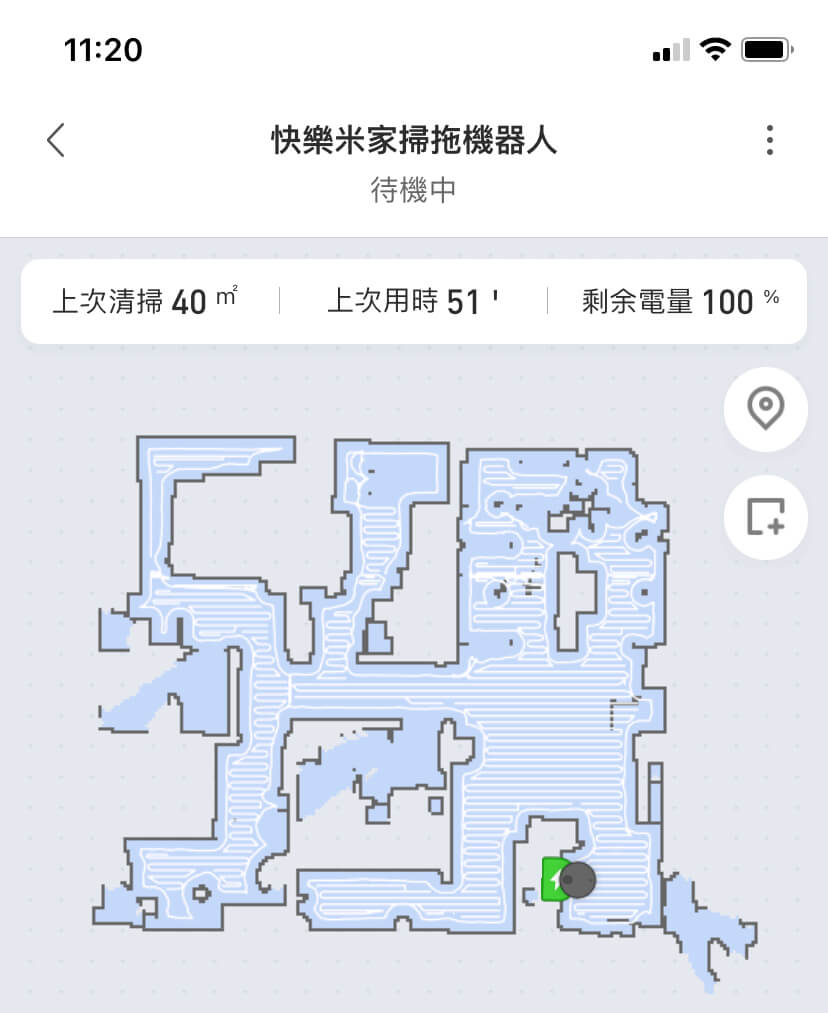 在清明節前宅配送到家,將各種零件很容易地組裝好,我使用米家 App 連結相當順利,就讓它進行第一次記憶我家地板範圍。