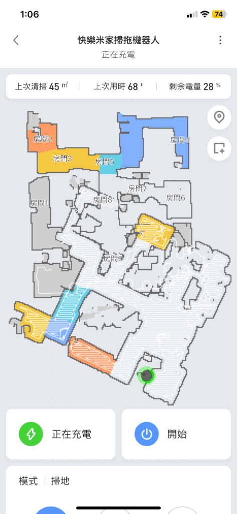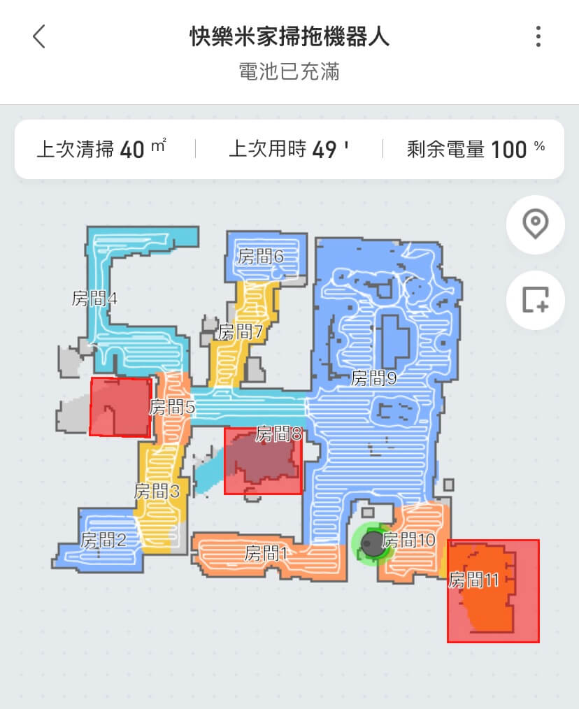 有看見房間號碼嗎?通常我都是全域清掃,也就是不區分哪個房間,反正全部都掃就對了。只是會有只想打掃某個房間,此刻可以點擊某房間,就能請機器人直接掃某房間即可。