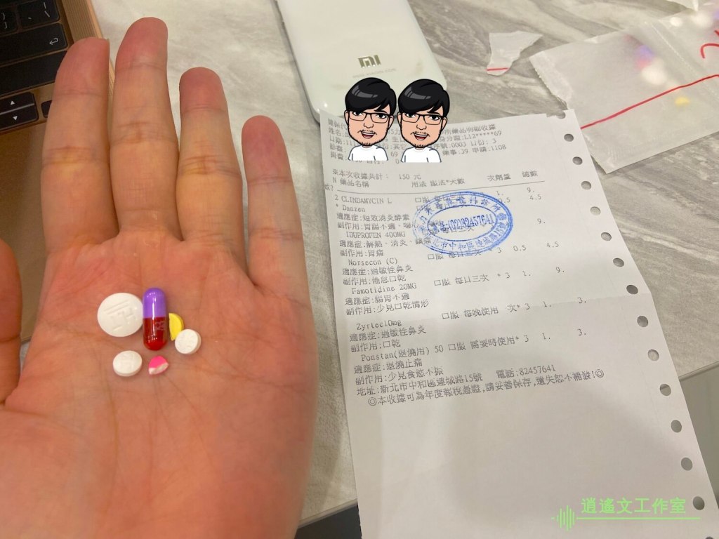 晚上去家附近診所,蘇菲雅幫我將快篩檢體送過去,然後進行視訊問診。於是我拿到一包三天份的藥。