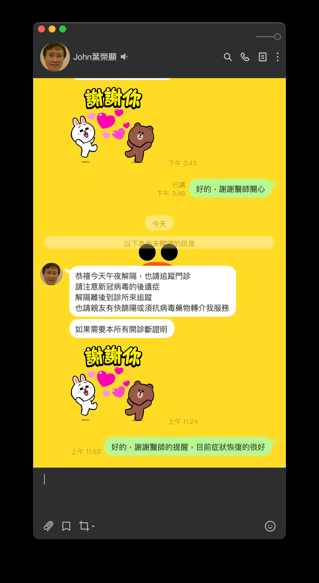 我在 Line 上看到一位醫師加我好友,原來是政府特派的關懷醫師,關心我目前狀況,若有需要可尋求協助。他陸續傳一些跟肺炎有關的說明與圖片,讓我更加了解該如何面對病情。