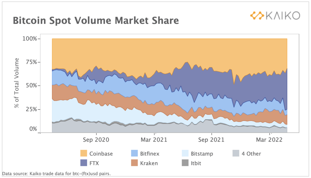 來看 FTX 加密貨幣現貨交易量如何後來居上~它很會行銷,塑造「利他」的形象來宣傳。