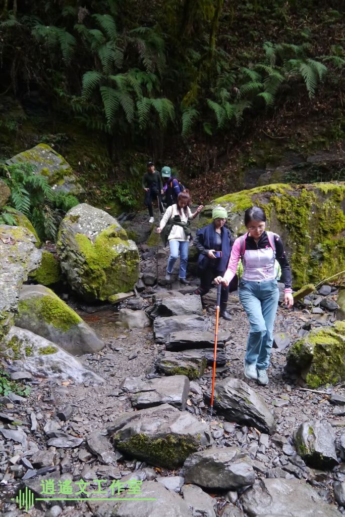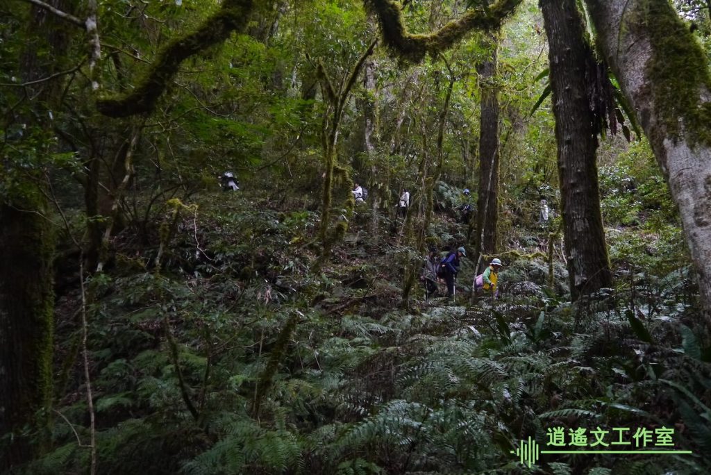 這次某姊妹團員就沒有帶小孩爬鎮西堡,將他們留在入口處的車子上。確實這難度不適合十歲以下小朋友,昨天就已不受控。一開始還會擔心下雨,有成員先穿上輕便雨衣,我則不擔心下雨,隨身攜帶雨傘,若雨勢太大還能應付。很幸運一路上,並沒有絲毫雨勢。