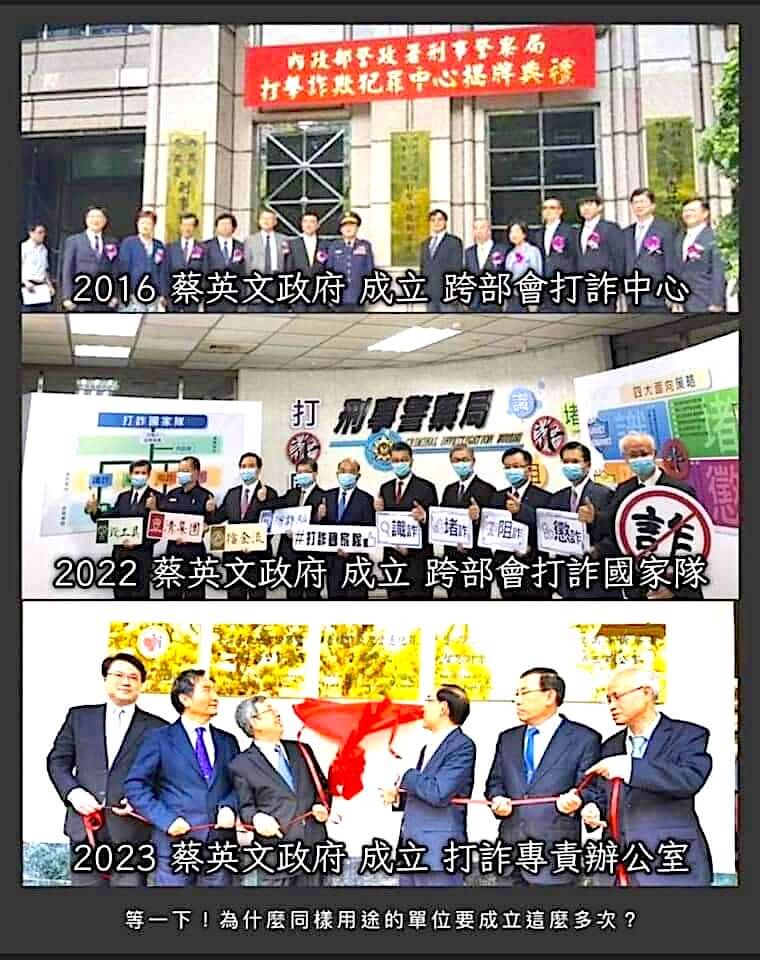 若沒看到網友製作這張圖,我根本不曉得原來政府成立三次「打詐國家隊」,只是名字稍微不一樣,就能再創立一個功能差不多的機構!?若有成效,會讓民眾信服,但為何詐騙案不減反增呢?🤔