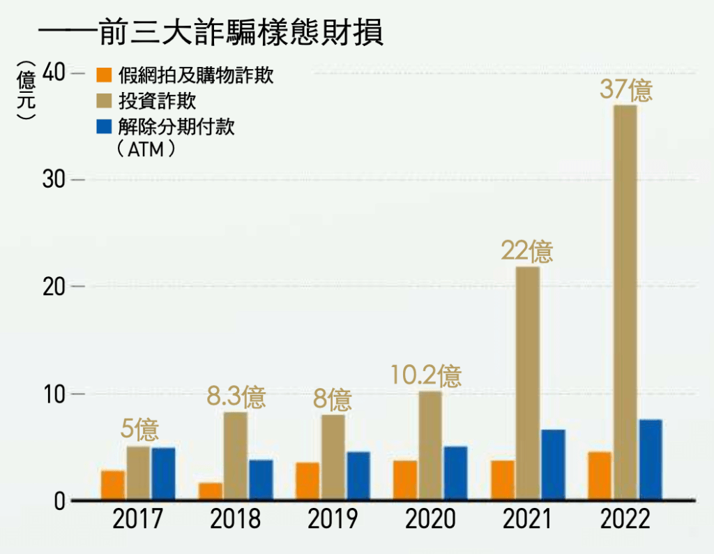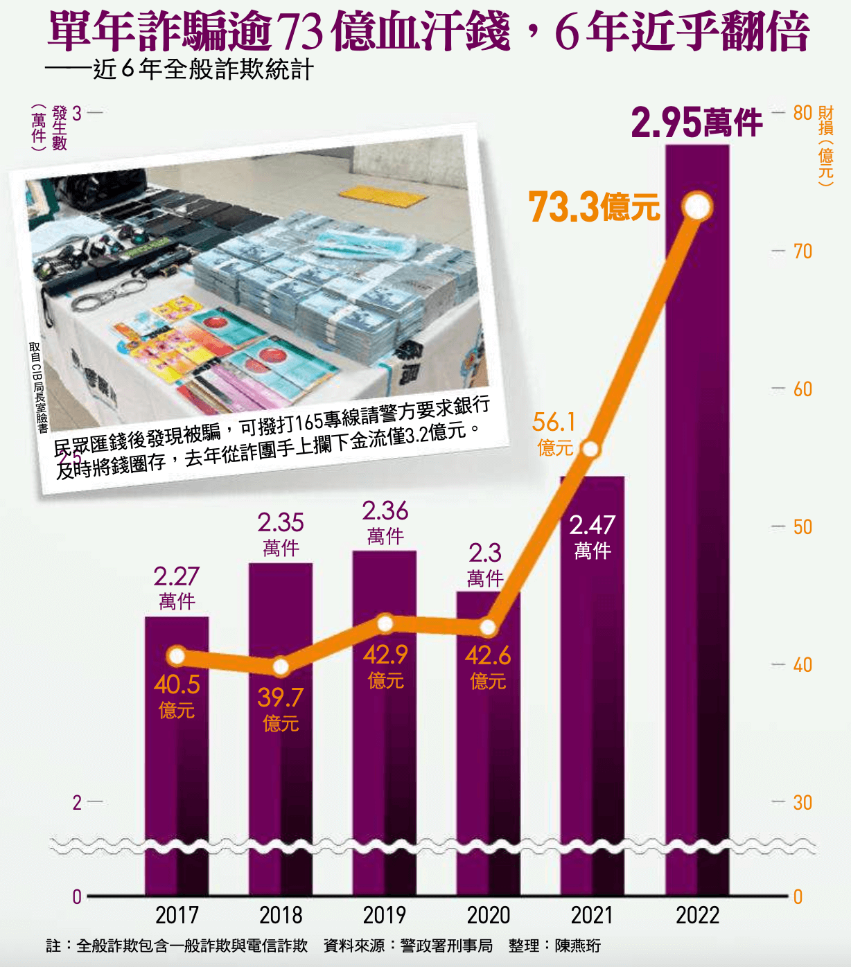 就因為投資詐欺案數暴增且財損偏高,帶動整體詐騙案件數和財產損失增高。