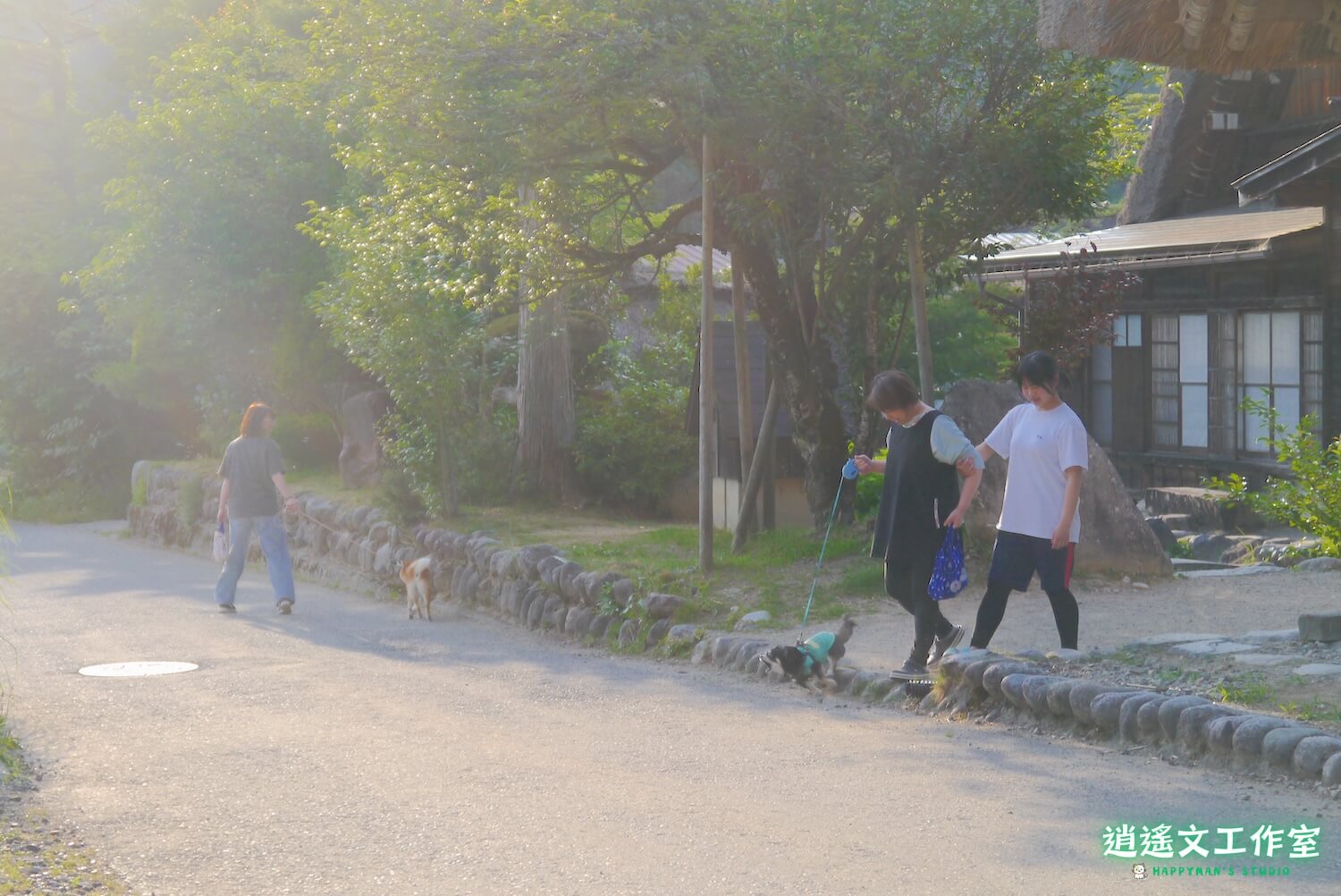 將近五點,開放的合掌屋陸續關門,外頭的天色依然很亮,我們便走出去繼續逛。沒想到遊客幾乎走光,才想起最後一班客運五點就發車了。這下可好了,這一路上幾乎碰不到遊客,頓時充滿鄉村氣息,總算能放慢腳步,踏訪這不怎麼現代化的環境。