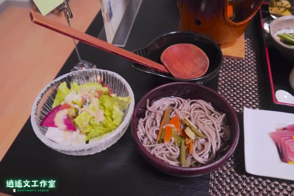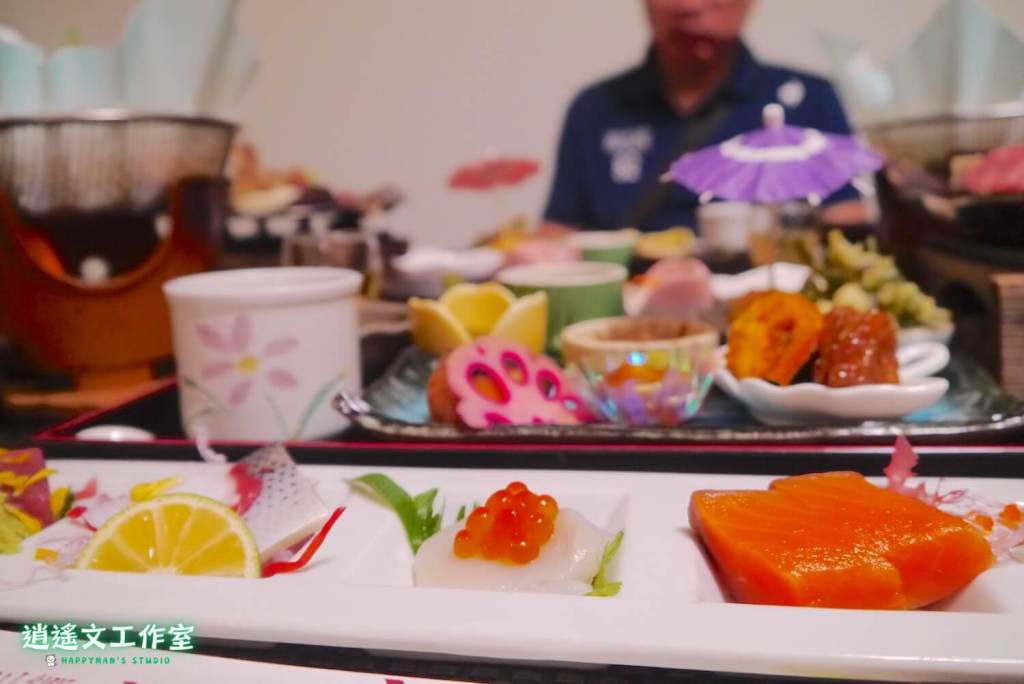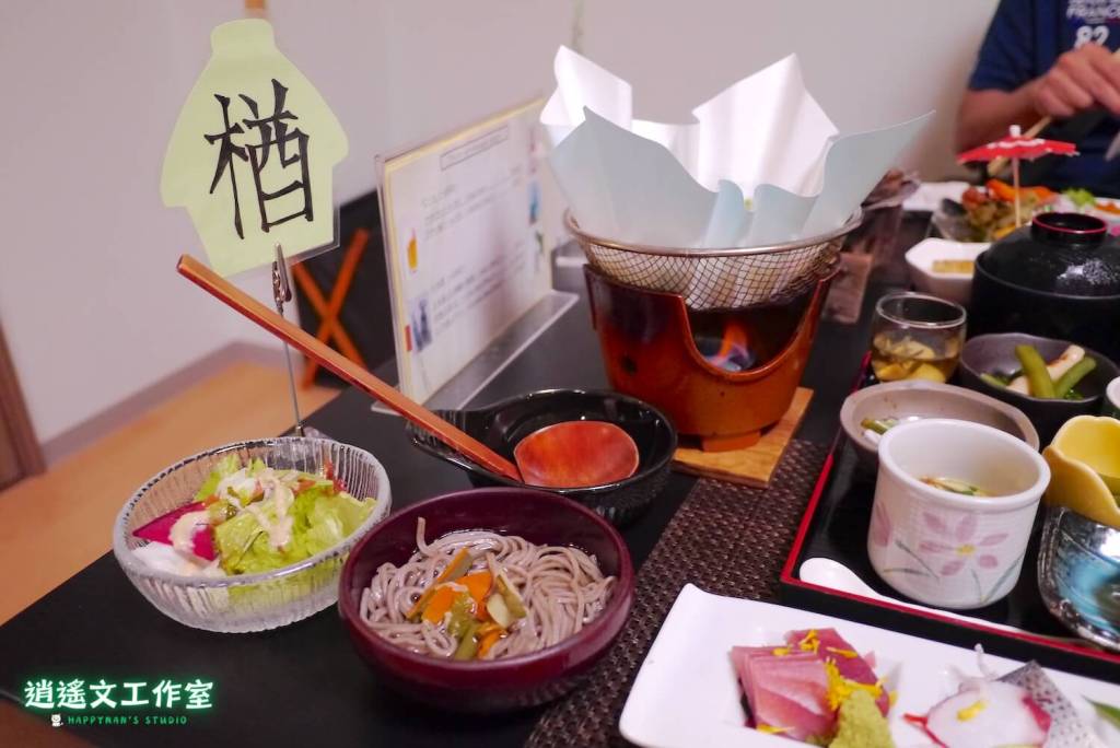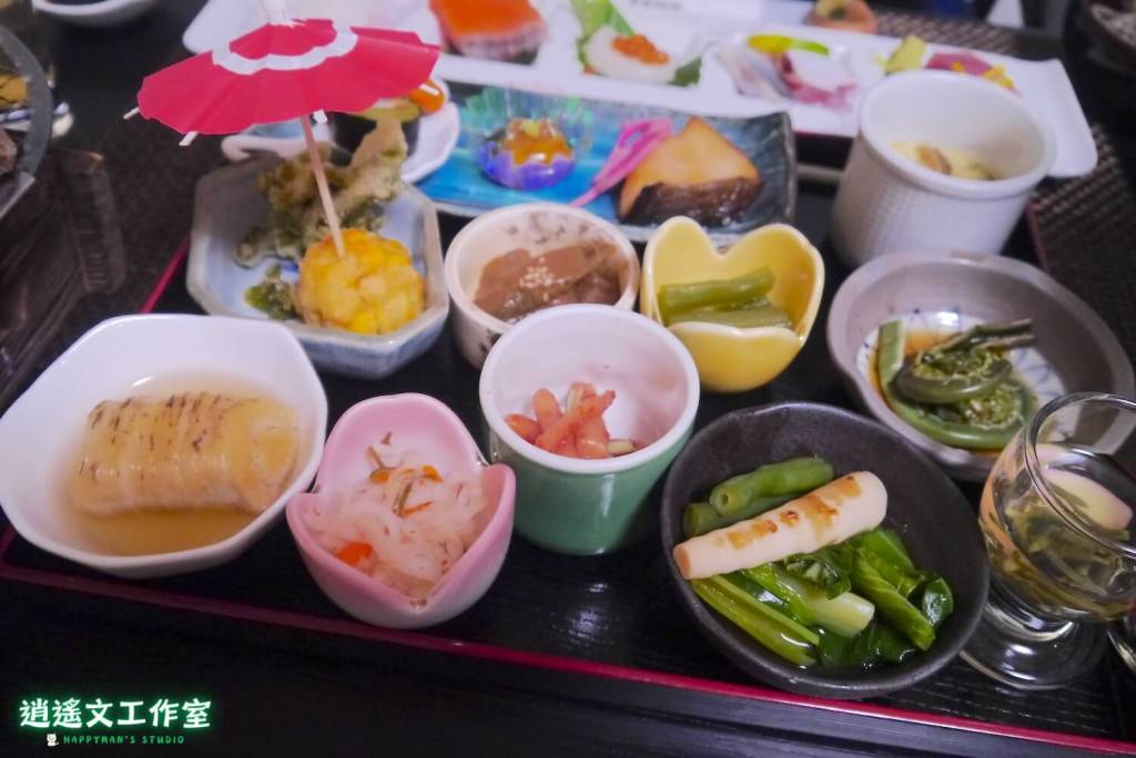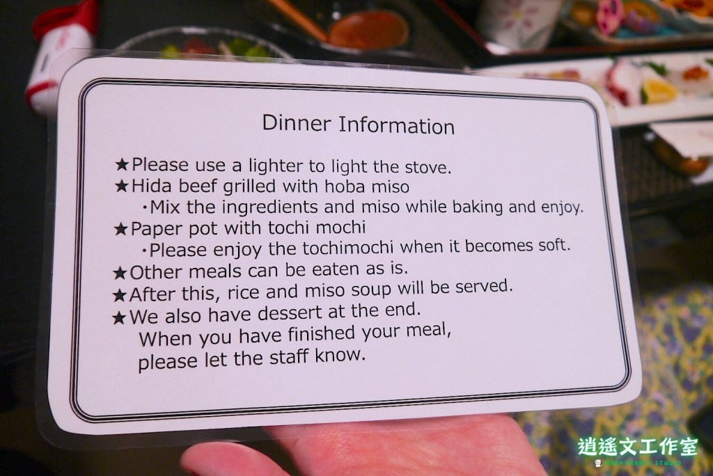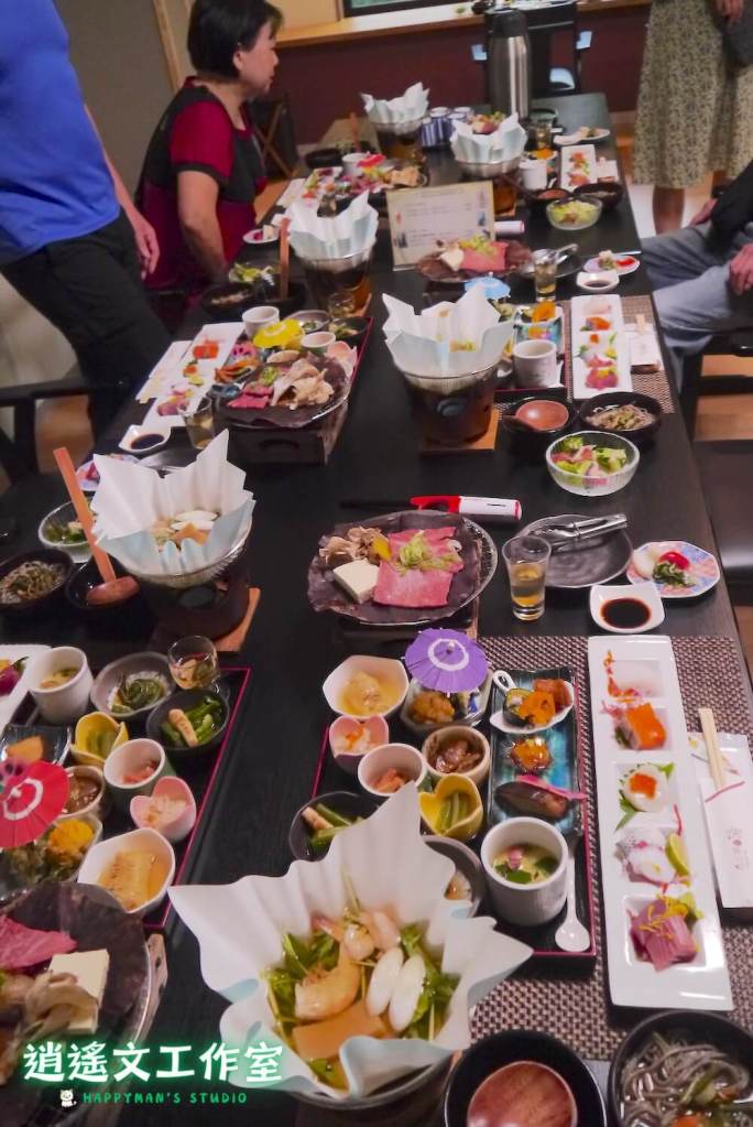 晚餐統一於晚上 6 點半至二樓餐廳用餐,我們在路上拍照意猶未盡,還是趕回來準備用餐。先前看部落客介紹,是冬天盤坐在和室中用餐,不知道是不是因為現在是夏天,所以是一般座椅,對老人家會比較好起坐。