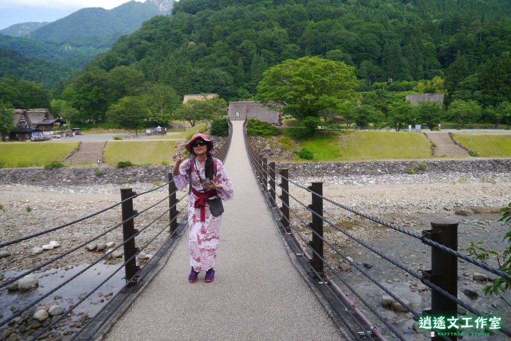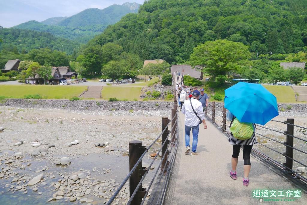 如果是自駕前來白川鄉,那從停車場到合掌村就會先經過這座吊橋──「相逢橋(であい橋)」。因為此地遊客如織,要拍美照除了保持耐心之外,更不要擋到往來道路。當然,避開人潮的不變法則就是早一點來或晚一點走囉~